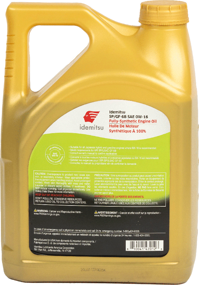 Idemitsu 0W-16 SP/GF-6B cuenta con una fórmula de viscosidad ultra baja totalmente sintética con una tecnología de aditivos robusta, que permite que el motor alcance los niveles máximos de eficiencia, par motor y caballos de fuerza. Idemitsu 0W-16 es la solución ideal para vehículos híbridos y a gasolina. Limpieza superior que mantiene el motor libre de lodos y barnices garantizando su limpieza y correcto funcionamiento
